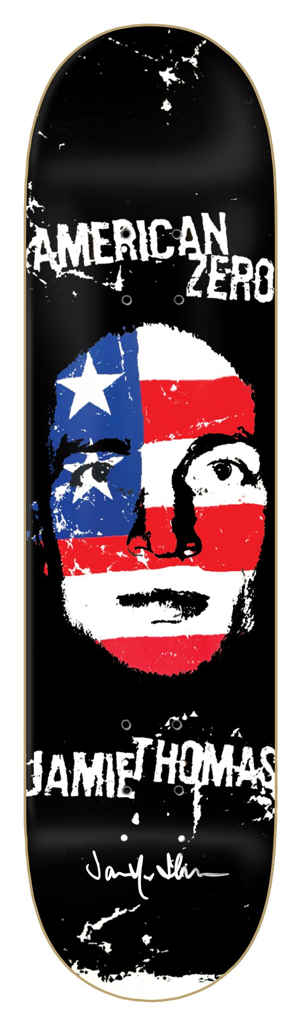 In 2001, Zero was featured with Jamie’s character in Tony Hawk's Pro Skater 2. This 'American Zero Face' graphic was one of the deck options in the game and later in the THPS 2 Tech Deck series.